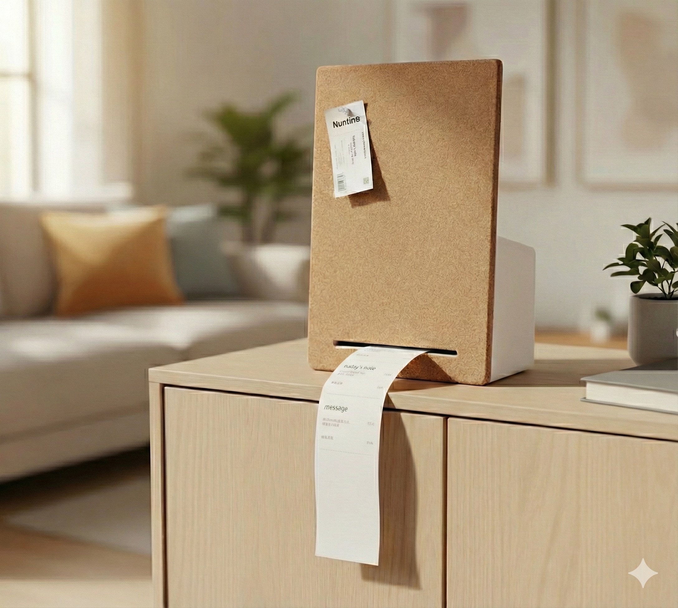 nuntino is a tiny thermal printer that brings your digital messages into the physical world. Send a thought, a reminder, or a heartfelt note from anywhere - and watch it appear as a printed keepsake in your loved one's home.